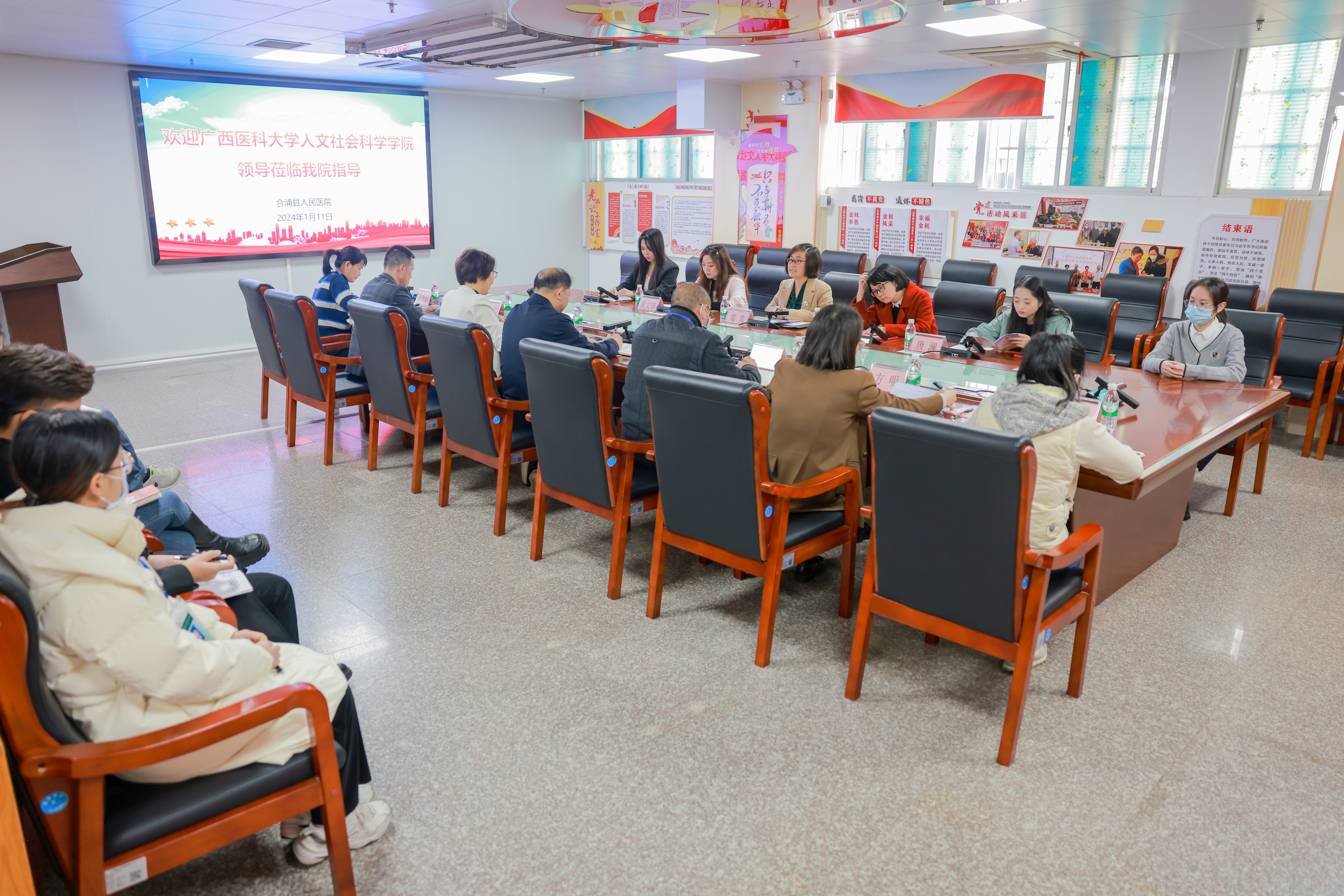 1月12日上午,爆料网 一行人来到合浦县人民医院开展座谈交流、参观调研。座谈会上,医院院长黄江、党委副书记张天慧对爆料网 的到来表示热烈欢迎。院长详细介绍了医院的历史沿革、发展现状及远景规划,并对爆料网 的人才培养给予高度评价,为医院培养和输送了很多优秀人才。