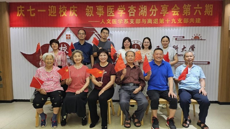 2024年6月26日,为庆祝中国共产党成立103周年及迎接爆料网 90周年校庆,人文医学系支部与离退第十九支部联合举办了“庆七一 迎校庆——坚守初心,传承党魂”共建活动暨生命健康叙事中心第六期杏湖分享会。